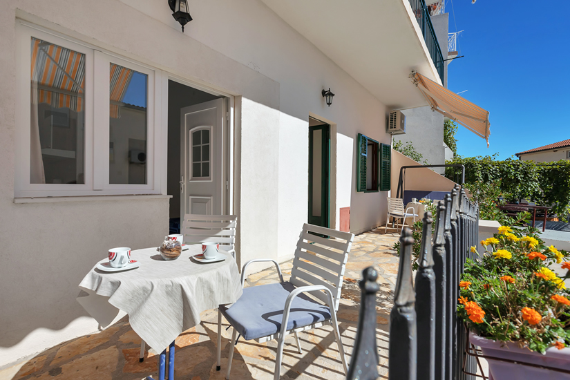 Apartman A2 (2+1) je studio apartman i nalazi se u prizemlju. Može primiti maksimalno tri osobe. Sastoji se od kuhinje, kupaonice, bračnog kreveta, kreveta za jednu osobu i terase s pogledom na more. Pogled na more nije otvoren s obzirom da je apartman u prizemlju. U apartmanu je sve novo. Apartman je idealan za dvoje ili troje odraslih.
