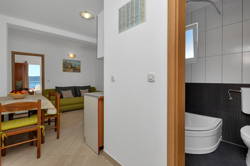 Apartman A7 (2+2) nalazi se na drugom katu. Može primiti maksimalno četiri osobe. Sastoji se od kuhinje sa sofom na razvlačenje, kupaonice, odvojene spavaće sobe s bračnim krevetom te balkona s pogledom na more. Apartman je idealan za parove, troje odraslih ili dvoje odraslih i dvoje djece.